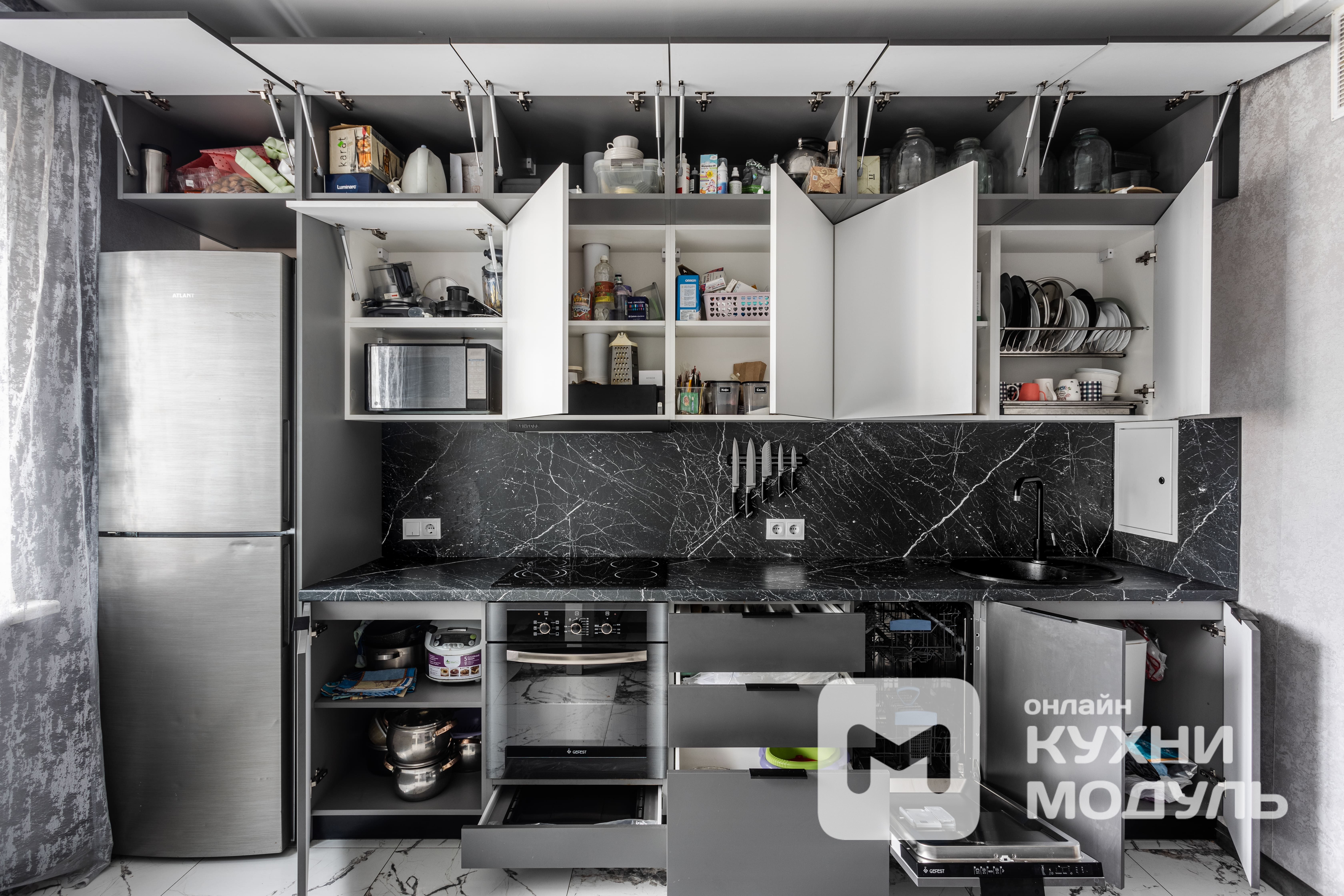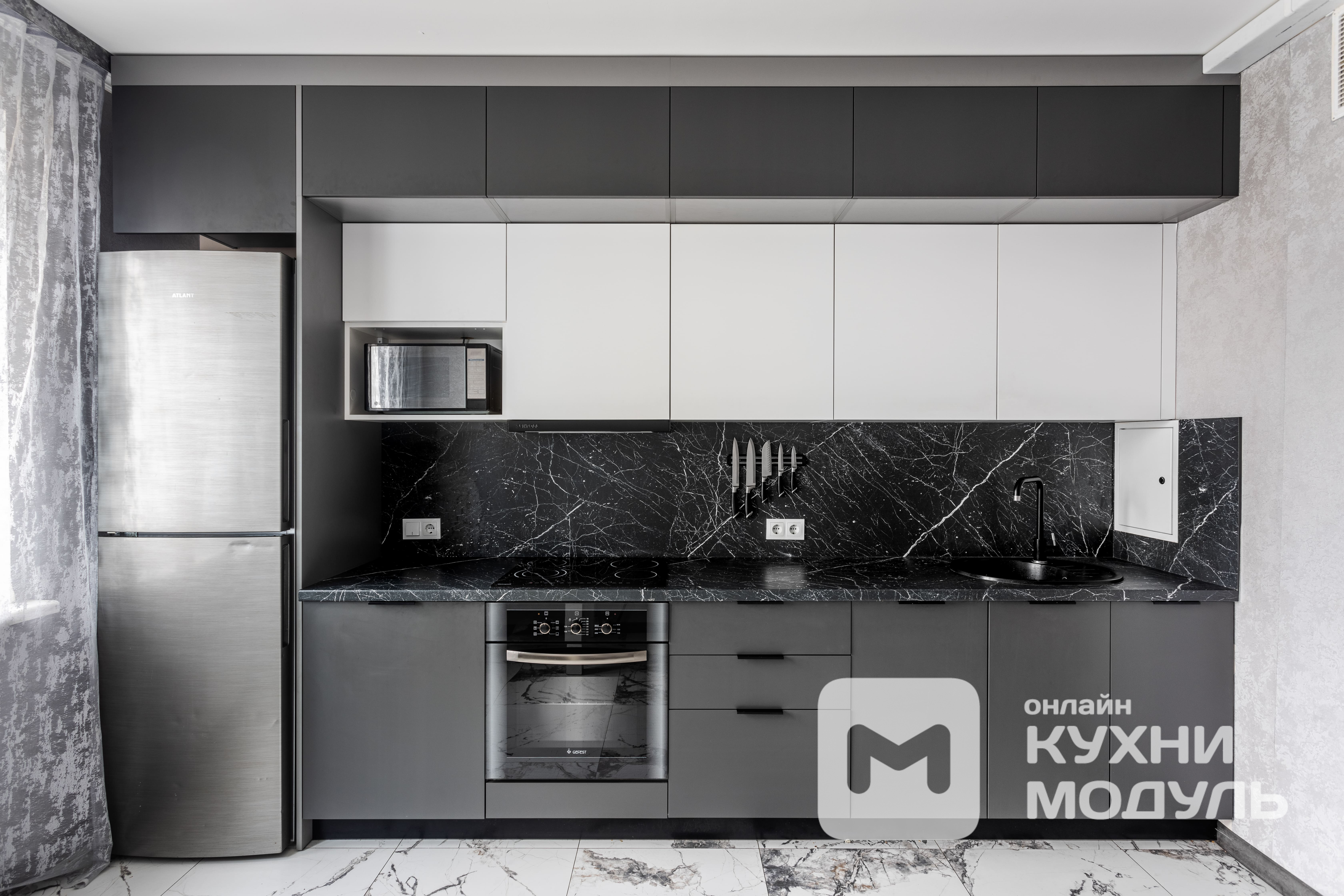 Кухня поставляется со всем необходимым, включая столешницу. Дополнительно подберем бытовую технику и сантехнику.
