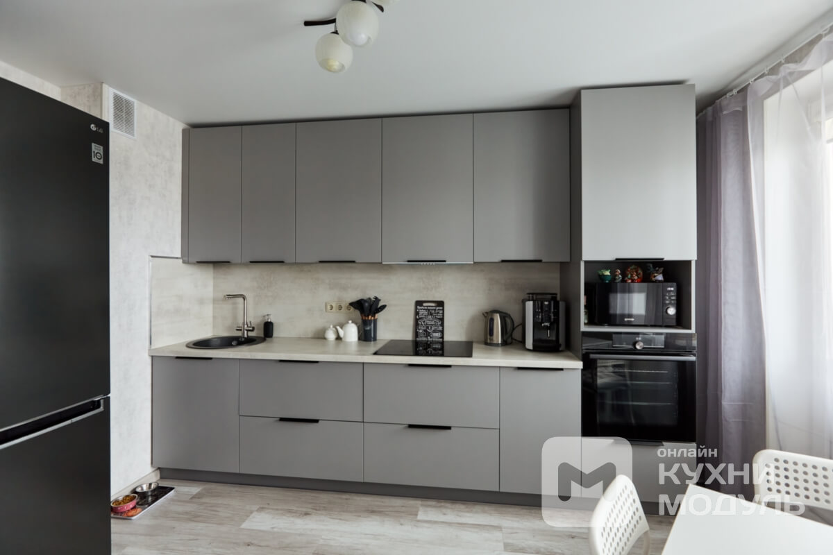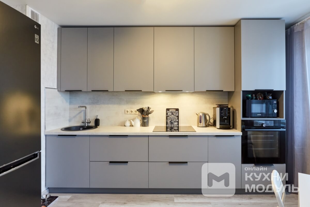 Кухня поставляется со всем необходимым, включая столешницу. Дополнительно подберем бытовую технику и сантехнику.