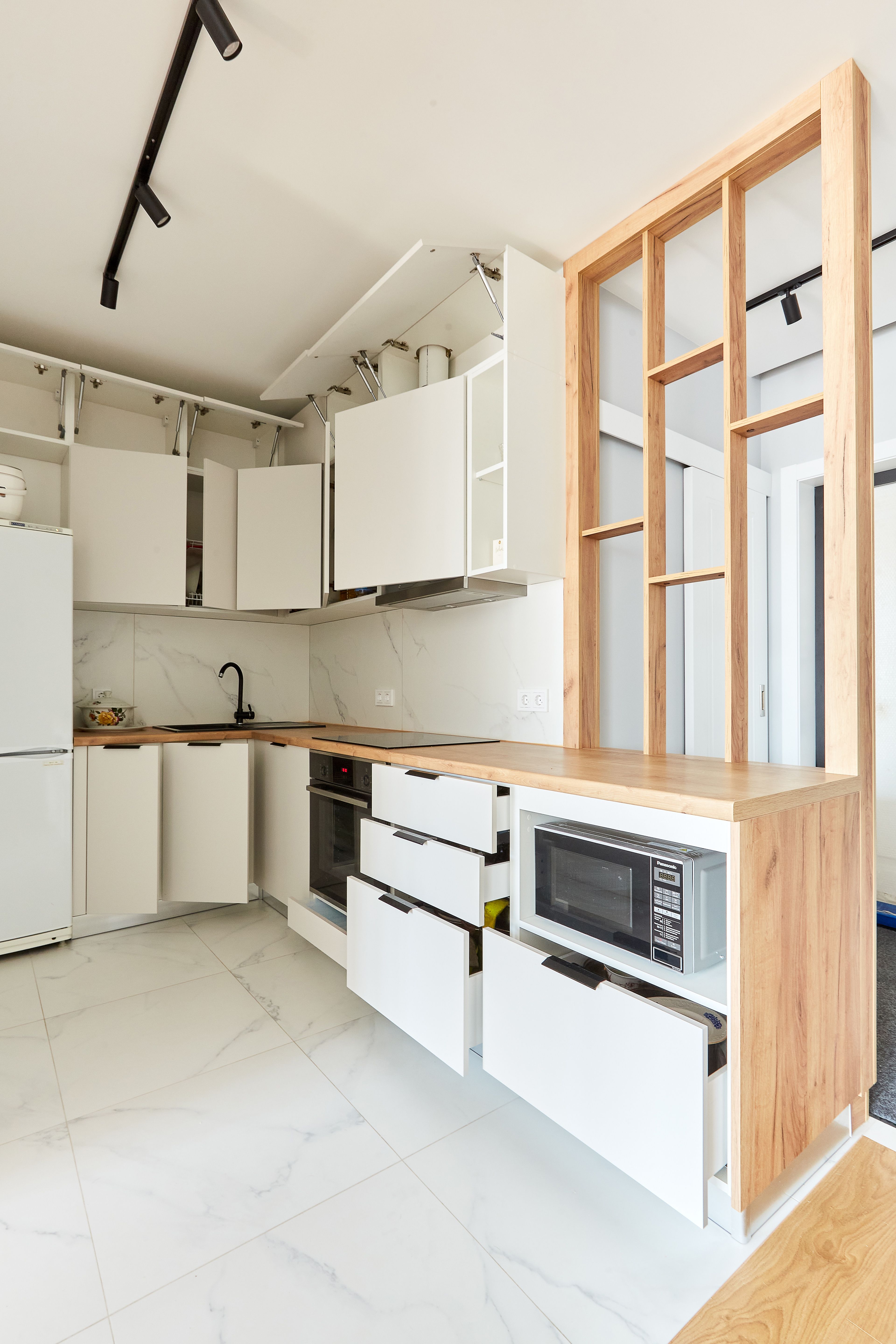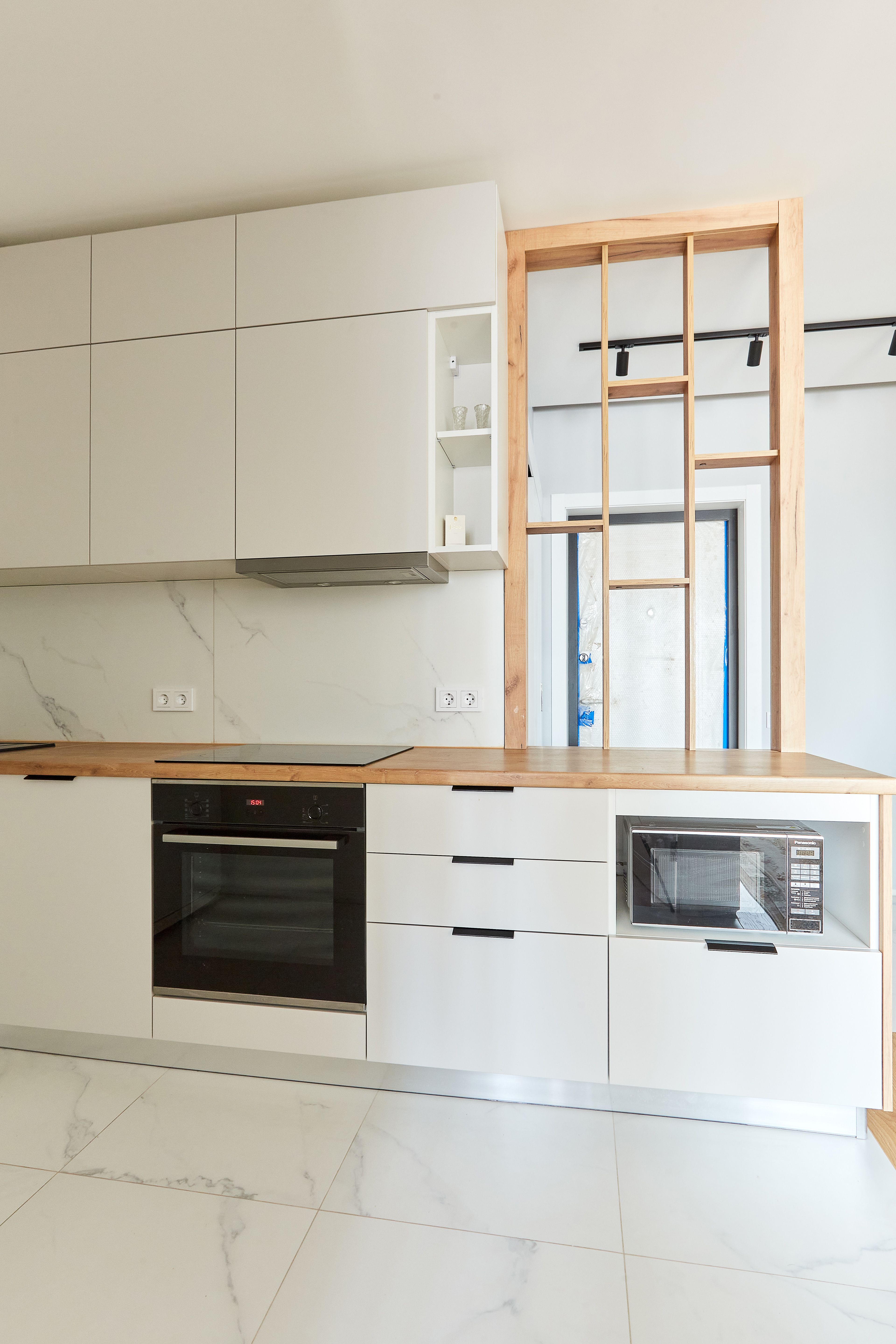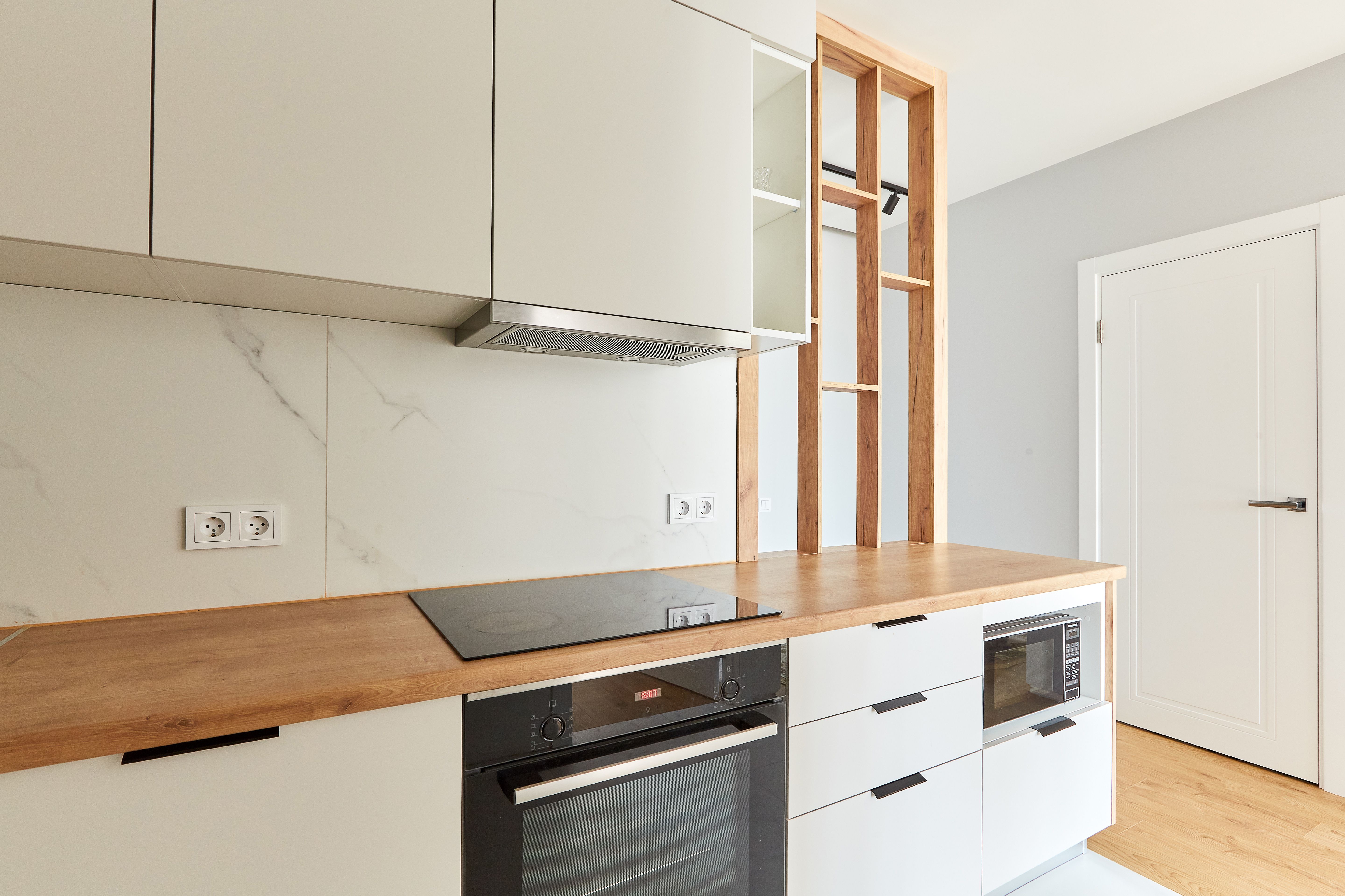 Кухня поставляется со всем необходимым, включая столешницу. Дополнительно подберем бытовую технику и сантехнику.